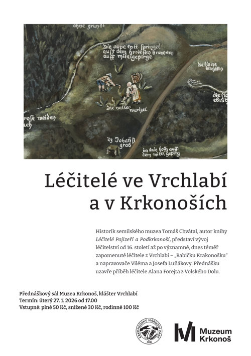 Historik semilského muzea Tomáš Chvátal, autor knihy Léčitelé Pojizeří a Podkrkonoší, představí vývoj léčitelství od 16. století až po významné, dnes téměř zapomenuté léčitele z Vrchlabí – „Babičku Krakonošku“ a napravovače Viléma a Josefa Luňákovy. Přednášku uzavře příběh léčitele Alana Forejta z Volského Dolu.