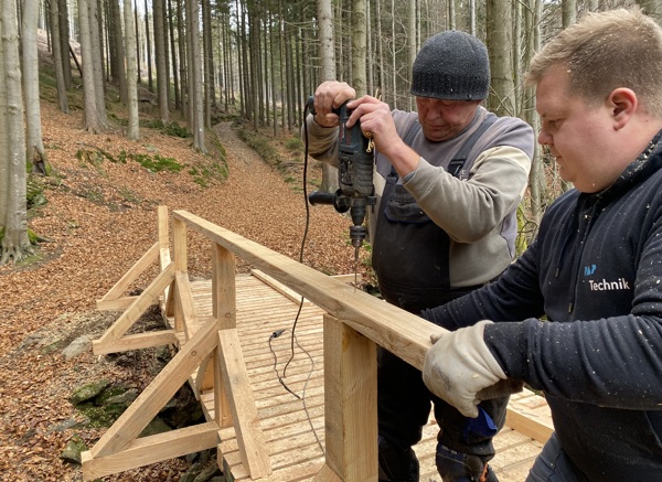 Dříve turisté potok překonávali po celodřevěné lávce. Nově jsme pro zvýšení odolnosti a životnosti použili dva IPE ocelové nosníky a přes ně položené modřínové hranoly. Právě modřínové dřevo zajistí delší životnost. Nově bude mít mostek také jednostranné zábradlí.
